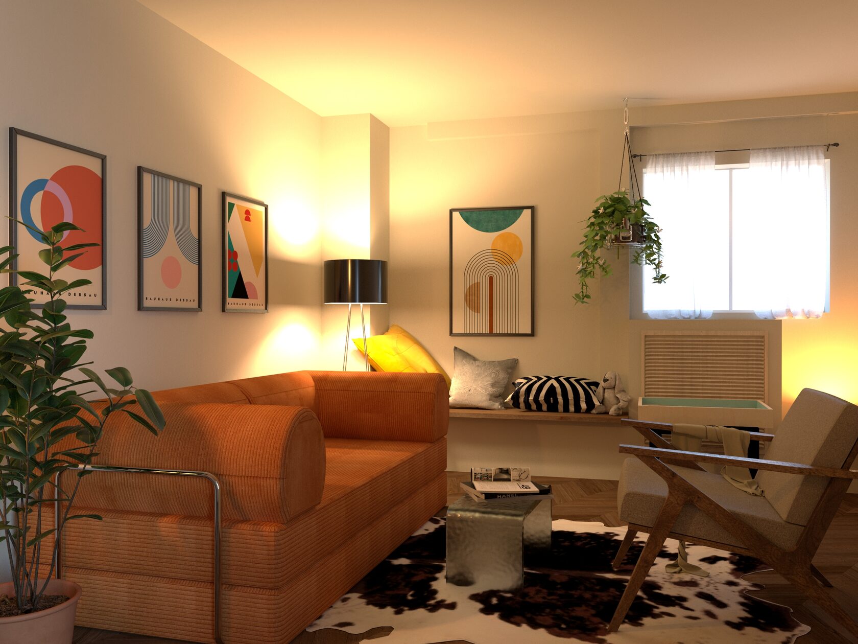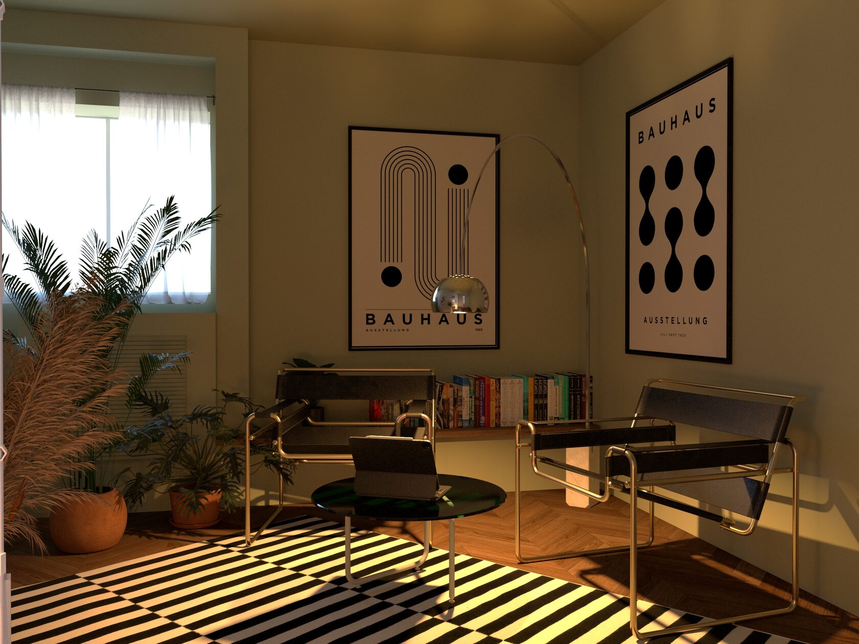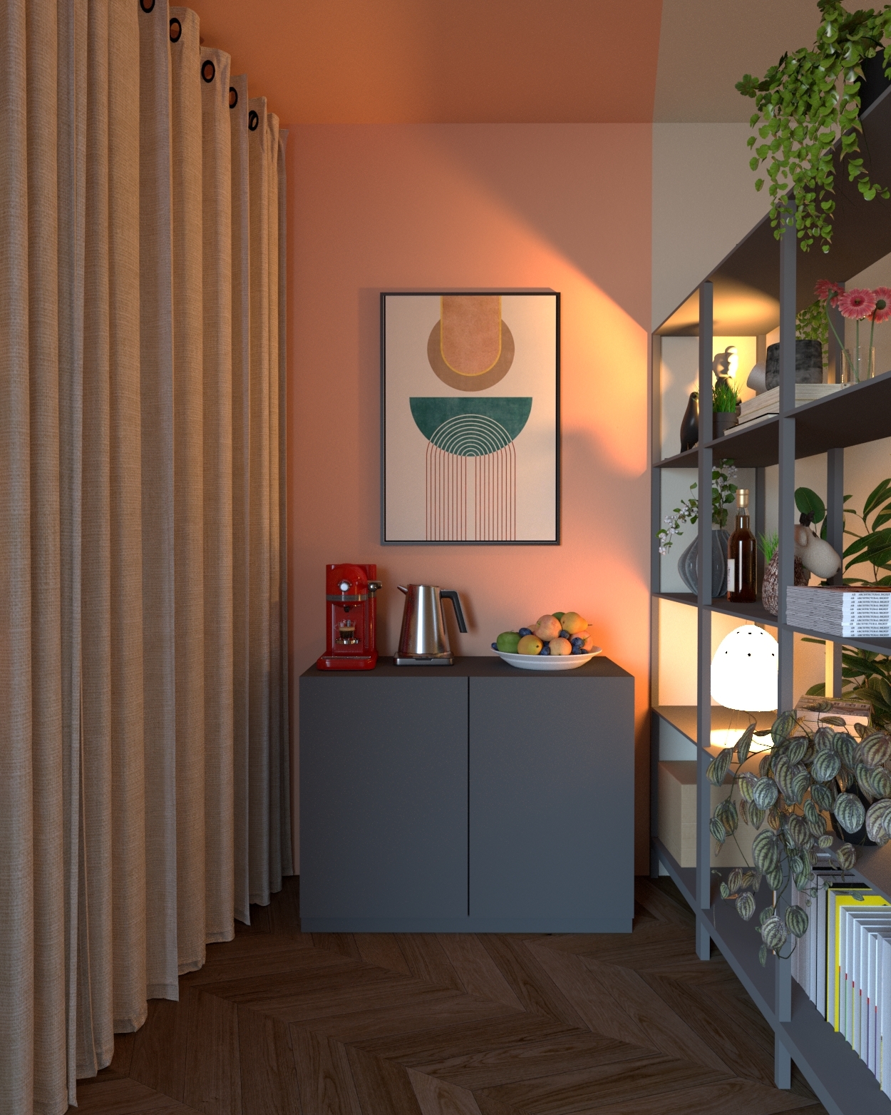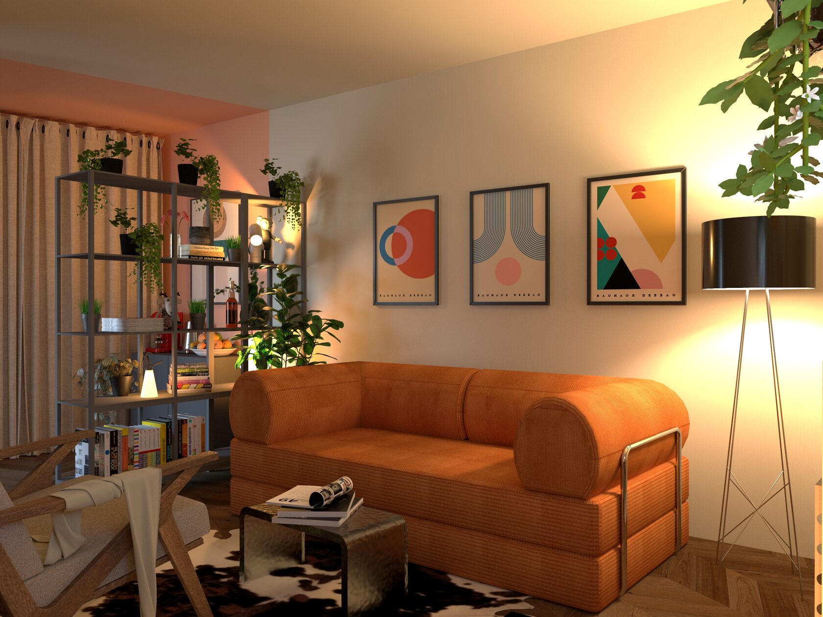 Сами пространства нейтральны, а акцент создаётся как раз за счёт яркой мебели разных брендов